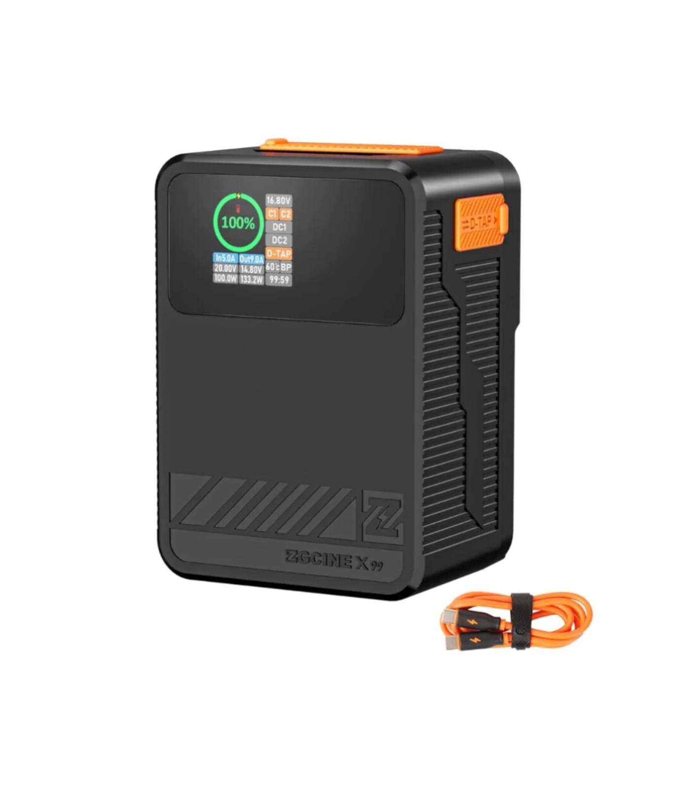 ZGCINE Batería de montaje X99 V, 6750mAh 99.9Wh 14.8V V Mount 65W PD USB-C carga rápida, con doble puerto USB-C, D-TAP, BP y DC, pantalla IPS para cámaras, videocámara, monitor,