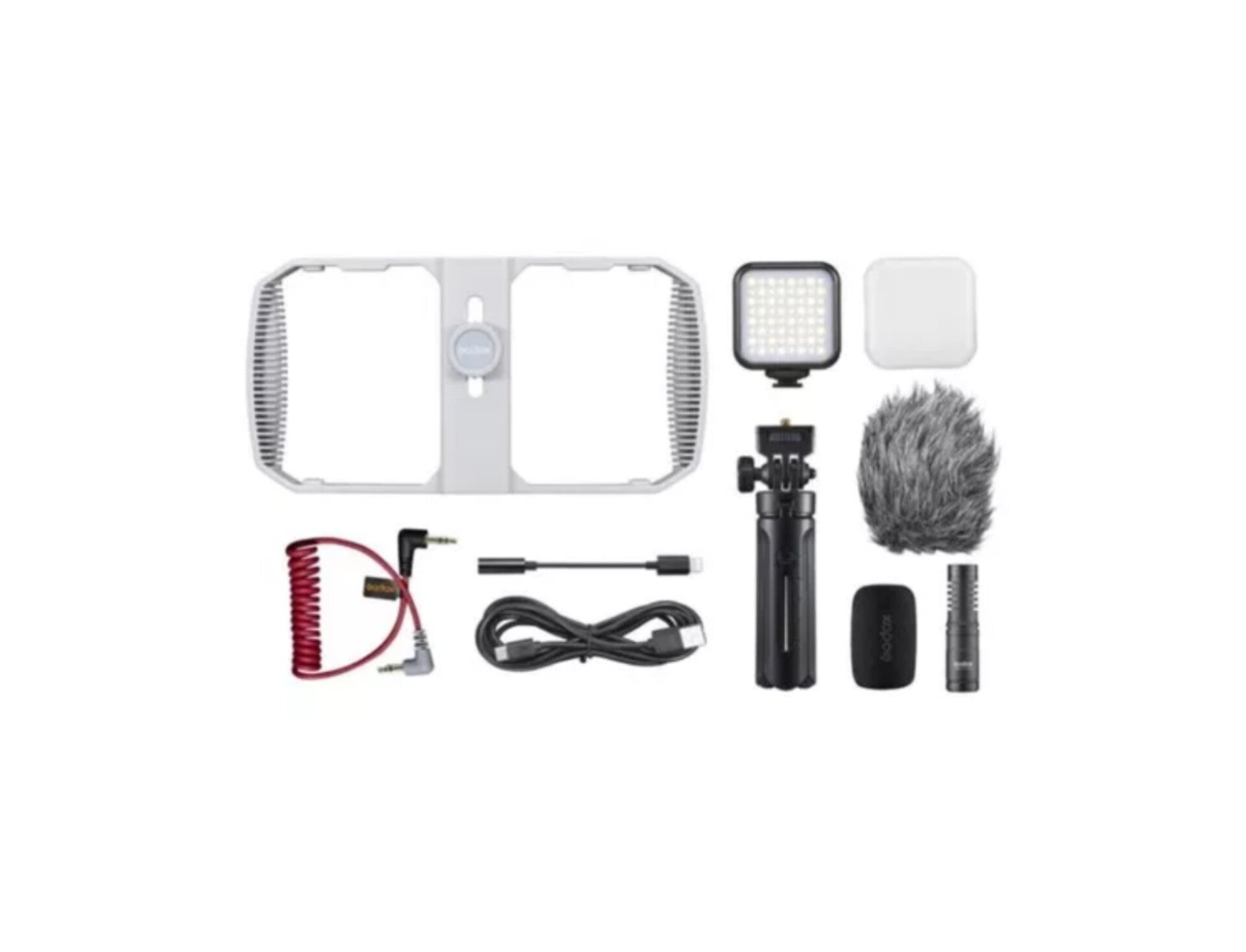 GODOX VK1 VK1-UC - Kit de video para teléfono inteligente con micrófono estéreo profesional + foco LED, trípode, 3 zapata fría y tornillo de 1/4.