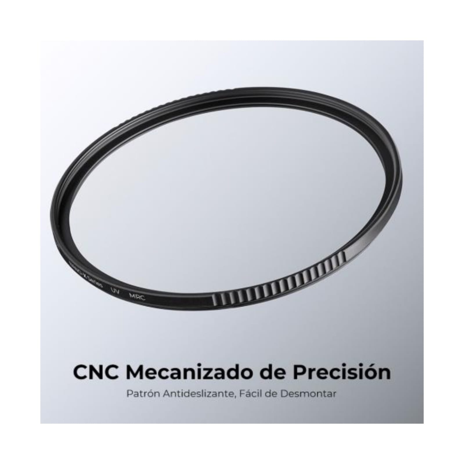El marco ultra delgado de aleación de aluminio, resistente y con tacto suave. Doble rosca para poder apilarlos que elimina el brillo excesivo y evita el viñeteado de gran angular.
