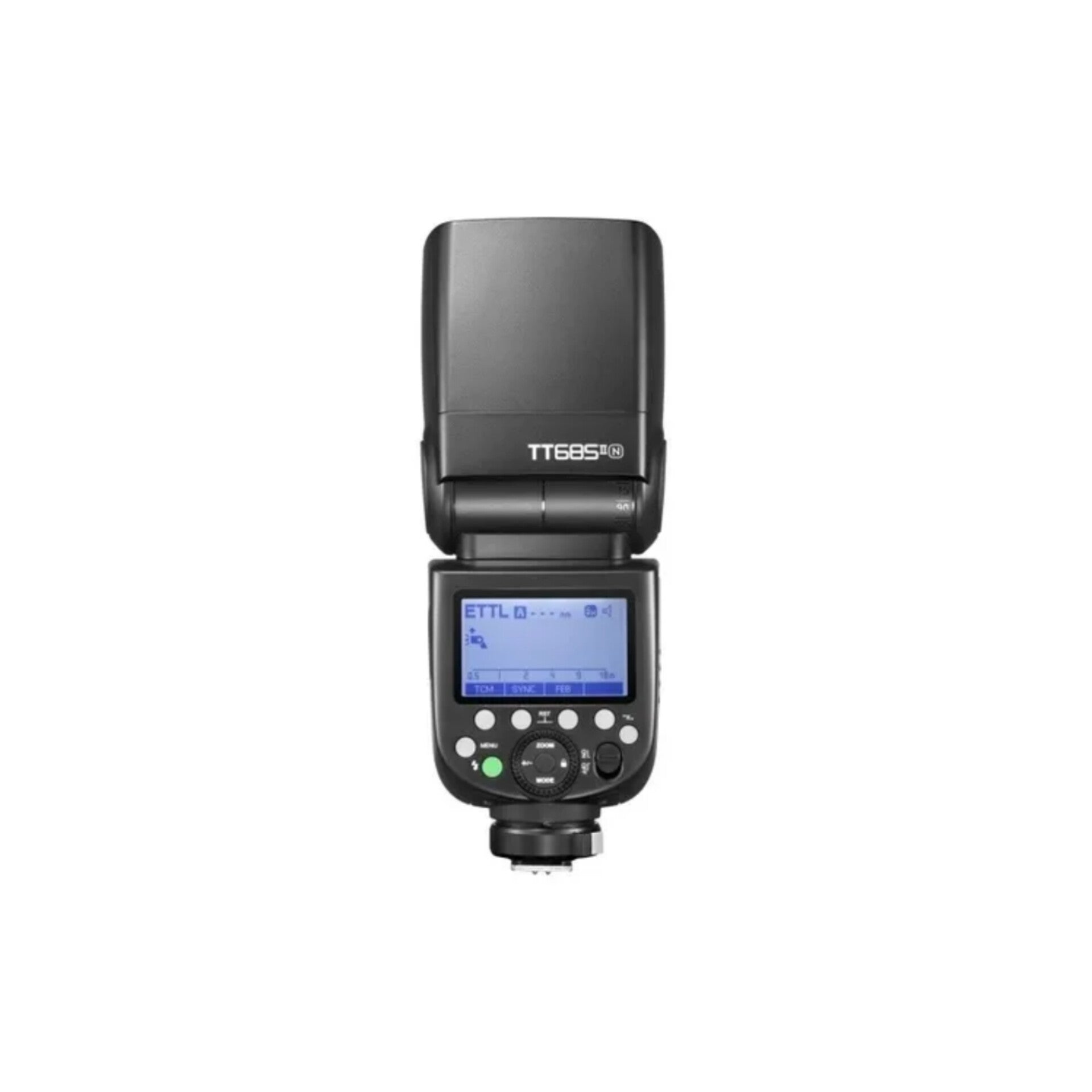 Este flash, una herramienta de iluminación potente y eficaz, cuenta con un potente número guía de 60 m a ISO 100 con un rango de zoom de 20-200 mm. El TT685N II funciona como una unidad maestra o esclava completamente inalámbrica con funcionalidad TTL, y para una máxima versatilidad, esta unidad actualizada se inclina de -7 a 120° y gira 330°, lo que le brinda ángulos de flash más flexibles y un proceso de configuración de iluminación más eficiente. También se incluye una nueva y única función TCM (TTL convertido a manual), que permite la conversión instantánea de TTL a modo manual. Esta función lo ayuda a bloquear el valor de exposición adecuado y es útil para determinar rápidamente un buen punto de partida para configurar unidades de flash externas en modo manual. Para facilitar su uso, un panel LCD posterior de fácil lectura ilumina la configuración del flash, y el flash incluye un puerto de sincronización de 2.5 mm para una conectividad por cable básica.