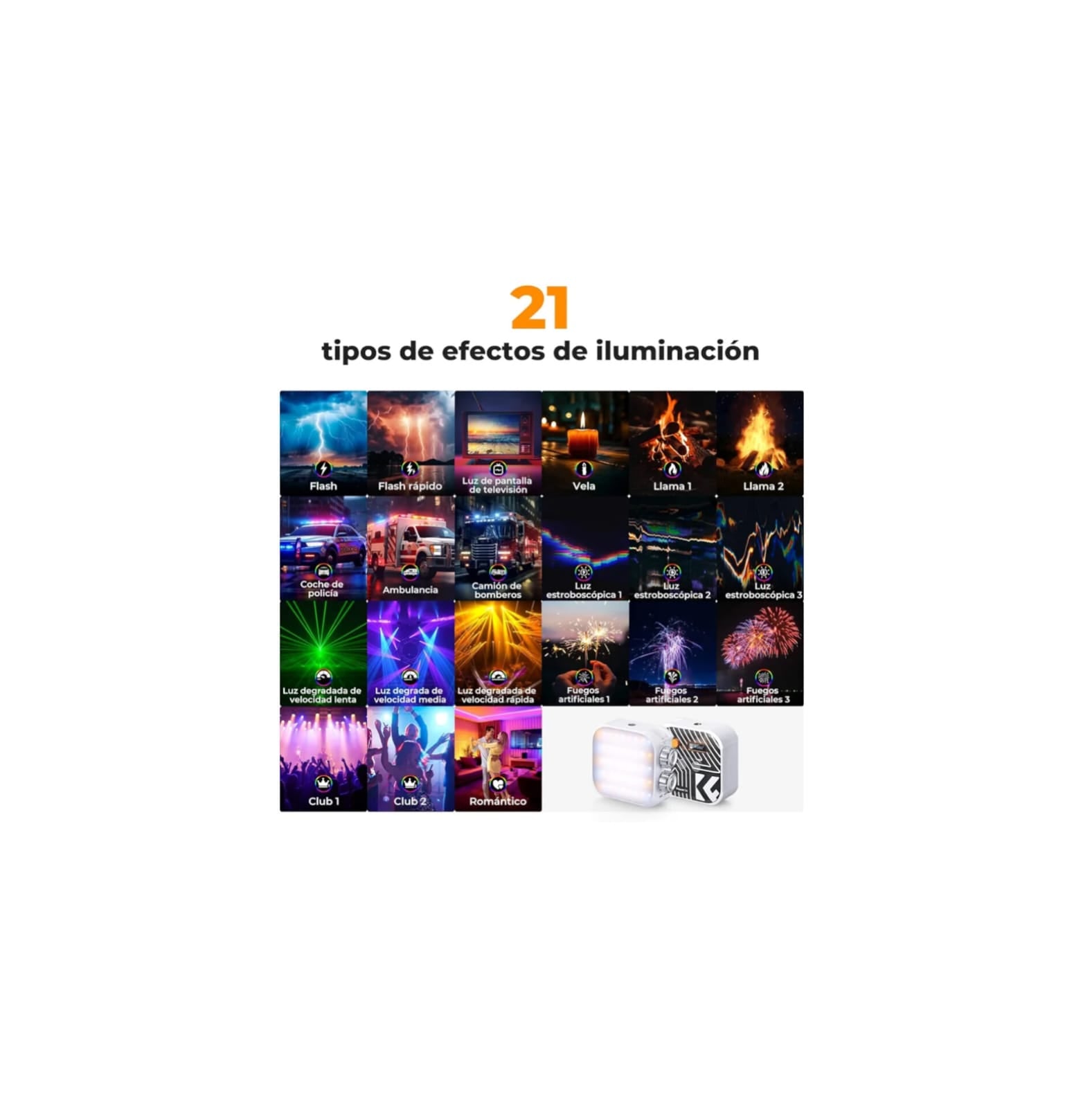 Luz de video RGB K&F Concept, luz de fotografía portátil a todo color de 360°, luz LED para cámara con 21 efectos de luz, 2500K-9900K CRI 96+, iluminación de fotografía recargable de 2000 mAh para vlogs, selfies (blanco)