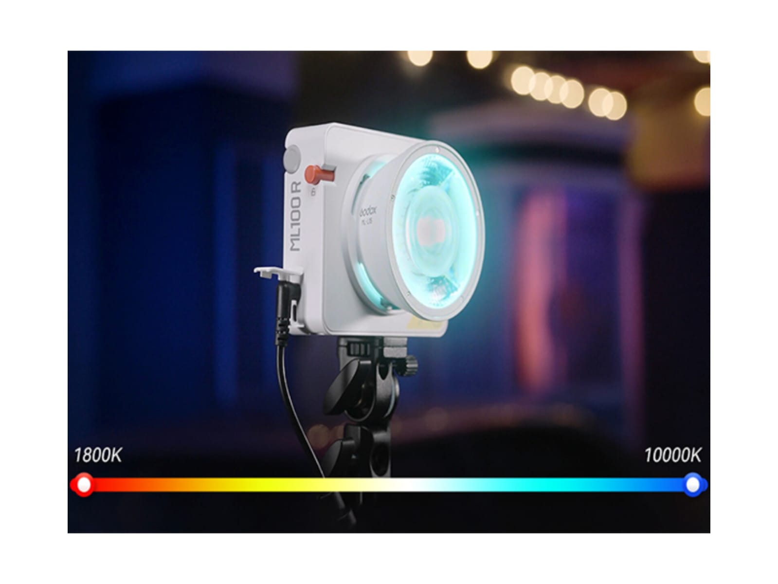 El ML100R se destaca por su rendimiento de color superior: innovadora tecnología de mezcla que garantiza una iluminación uniforme, ajuste GM para una corrección precisa del color y un amplio rango de temperatura de color de 1800K a 10000K.