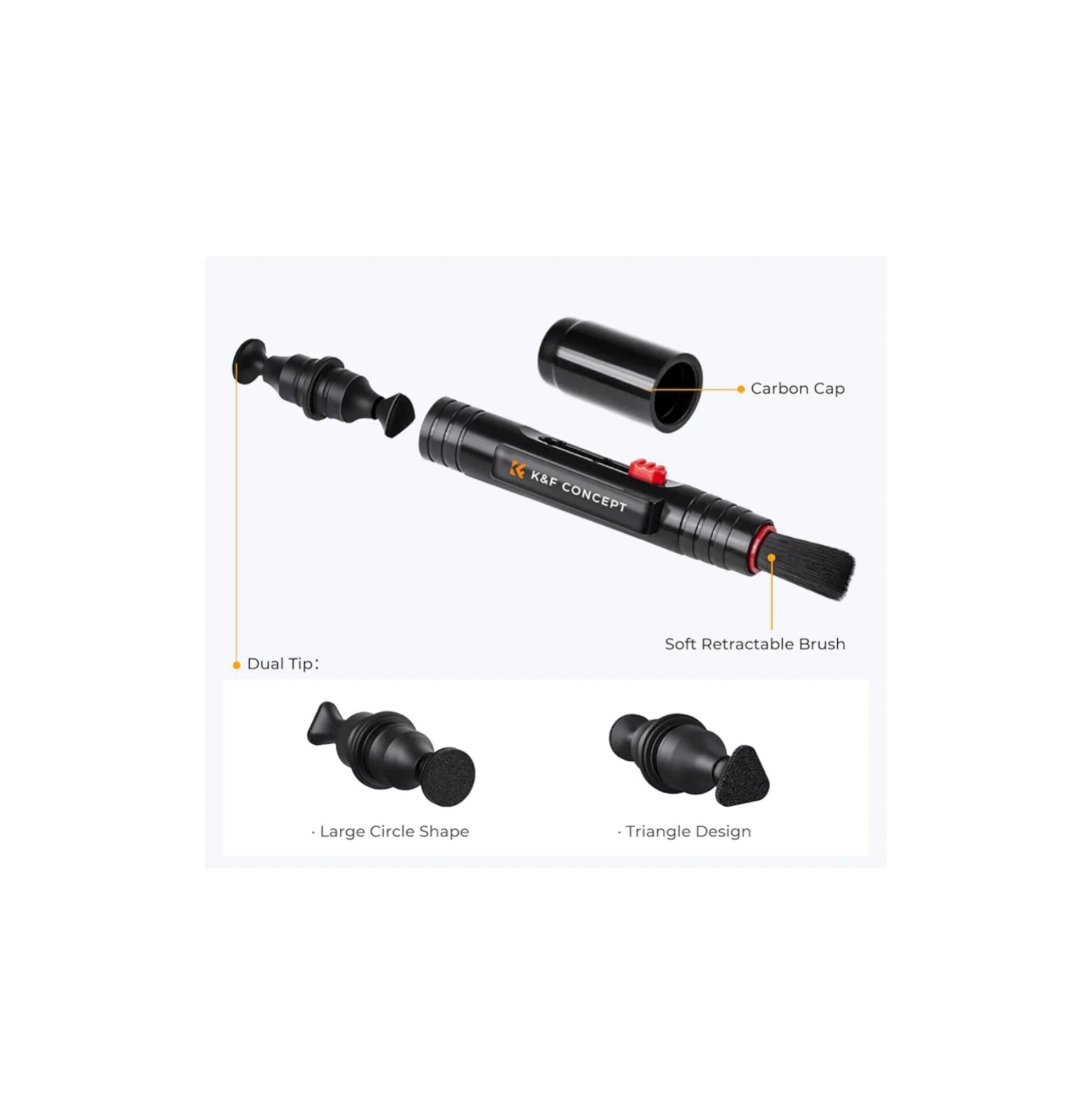 El limpiador de lentes adopta un cabezal de bomba de vacío, eficaz para limpiar y mantener la lente óptica, el efecto es mejor cuando se utiliza con un paño de limpieza, elimina fácilmente las manchas de aceite, el polvo de huellas dactilares y otra contaminación en la lente.