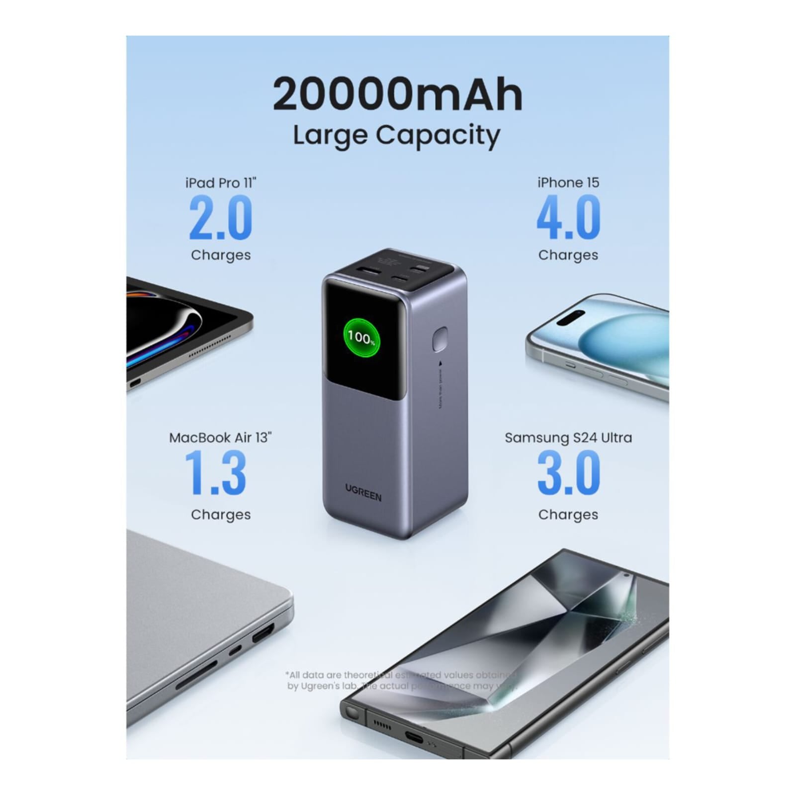 Marca: UGREEN, Capacidad Total: 20000mAh, Entrada USB-C