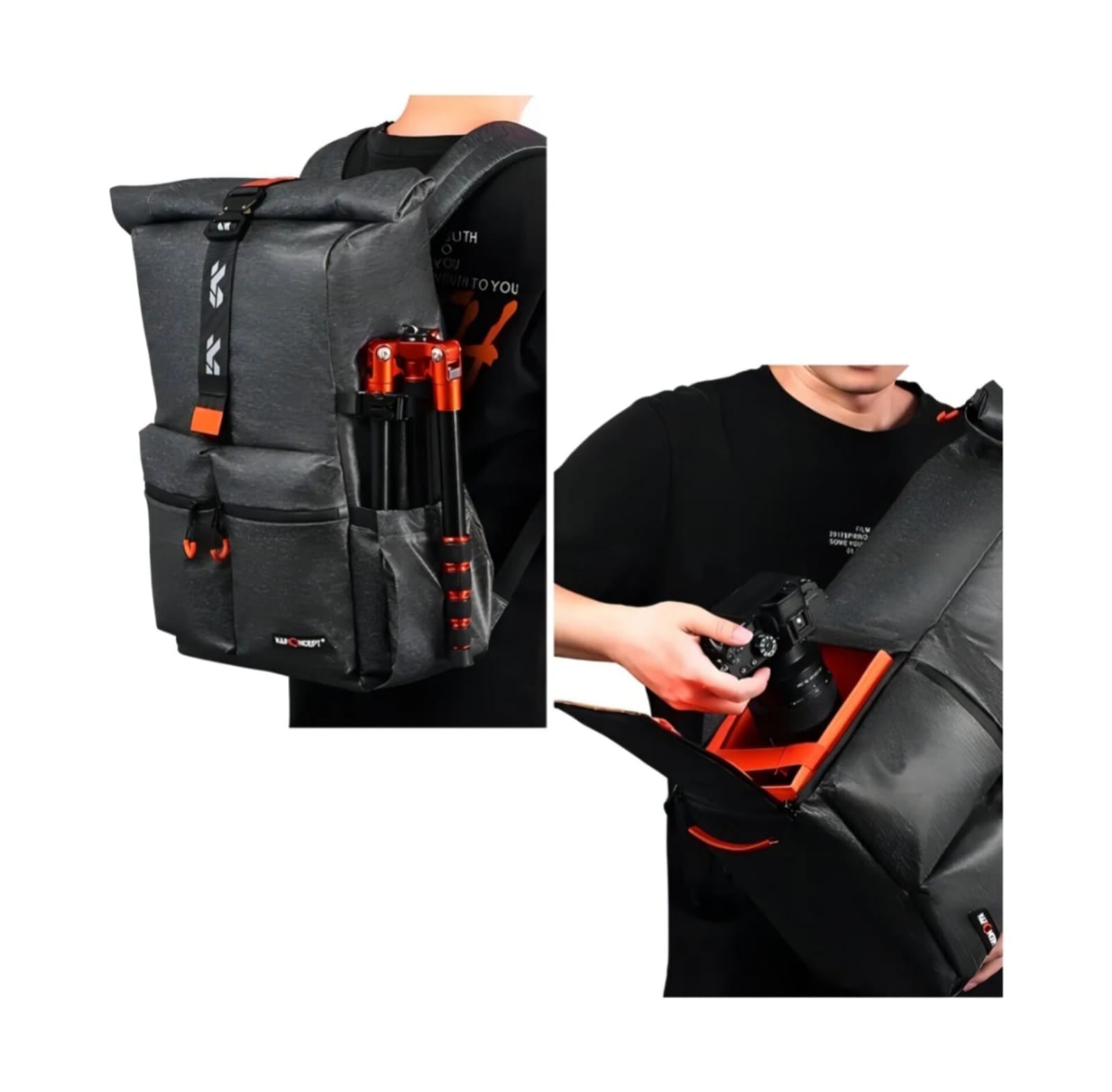 Mochila K&F Concept extensible de 30 a 41 litros color gris, con compartimiento lateral removible para una cámara y dos lentes