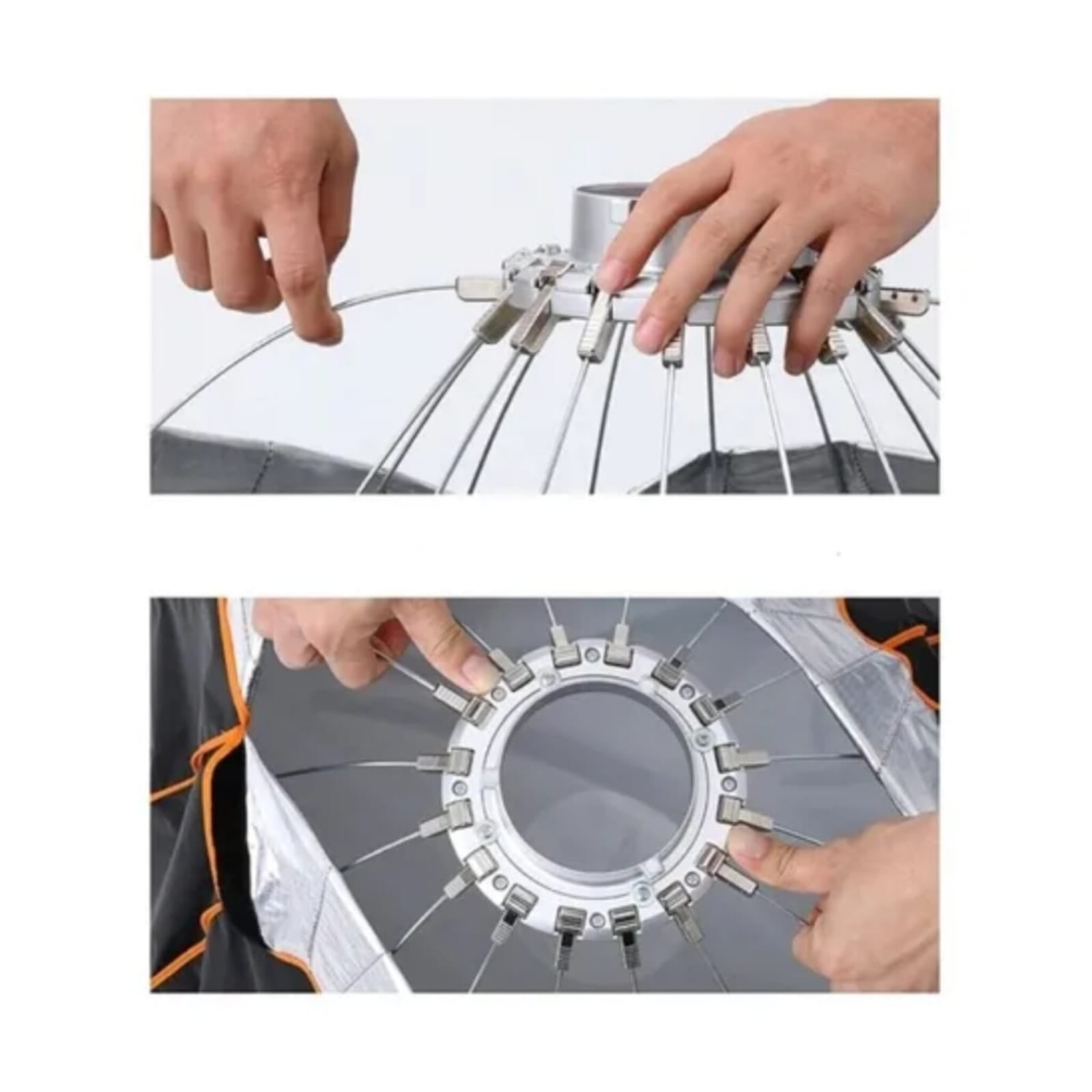 El Softbox parabólico viene con difusores internos y externos extraíbles que se pueden usar juntos, uno a la vez, o ninguno para lograr diferentes niveles de contraste. Se incluye una bolsa de transporte para almacenamiento.