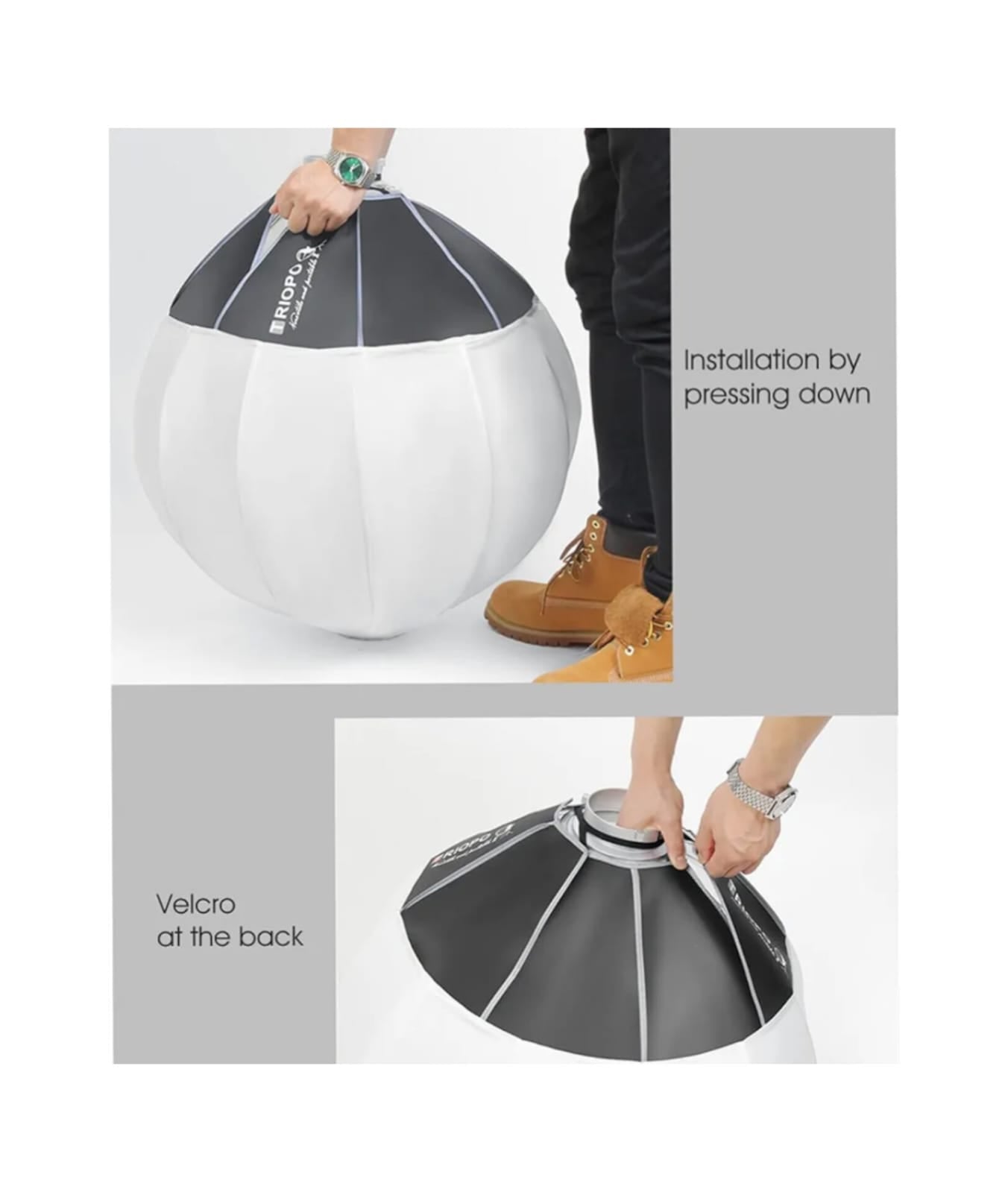 Este accesorio de iluminación cuenta con características excepcionales que lo hacen destacar. Inspirado en el diseño de las linternas tradicionales chinas, el Softbox tiene un diámetro amplio que alcanza los 85 cm. Esto permite controlar el ángulo de iluminación en 360 grados, proporcionando una iluminación omnidireccional sin sombras y de forma uniforme en todo el espacio. Su sistema de instalación rápida permite montar y desmontar el Softbox en cuestión de segundos, mientras que su diseño plegable facilita su almacenamiento y transporte, ofreciendo flexibilidad y comodidad. Equipado con el montaje estándar Bowens, este Softbox es compatible con la mayoría de los estroboscopios de estudio y accesorios LED.