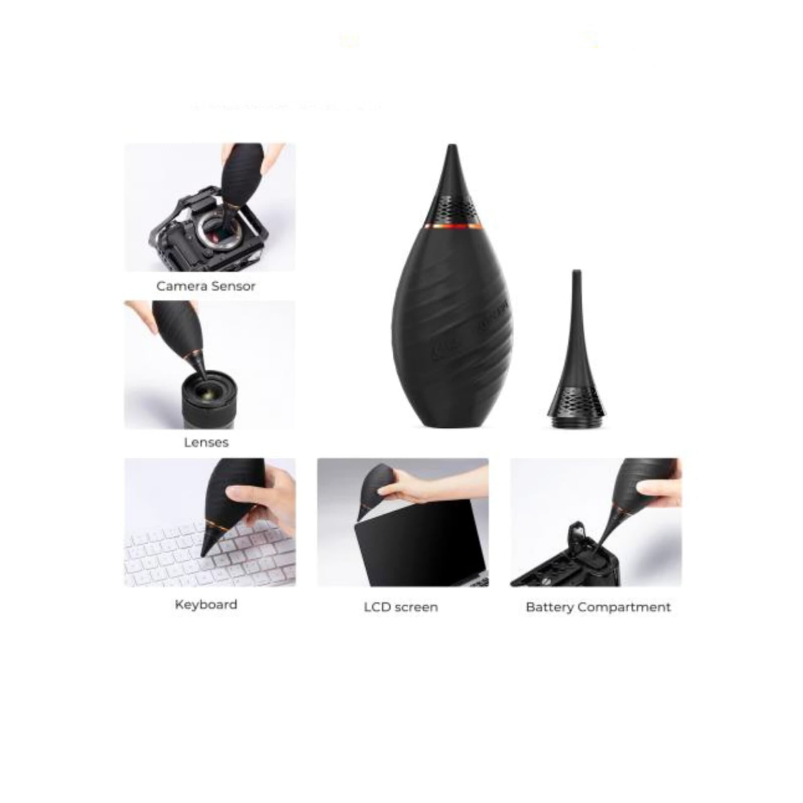 El soplador de aire de la lente de la cámara puede soplar fácilmente desde la esquina que otros no pueden soplar. Puede eliminar rápidamente el polvo y las impurezas en un corto período de tiempo, manteniendo limpios la lente, el cuerpo y el sensor de la cámara.