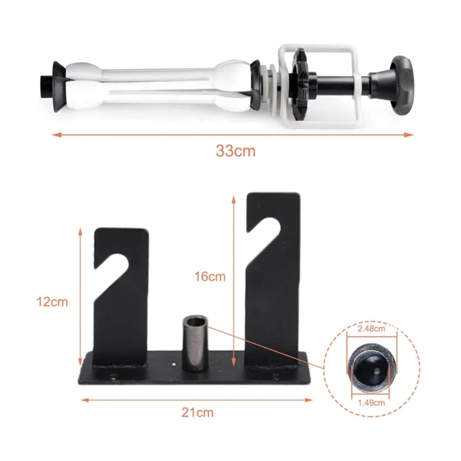 Sistema de soporte de fondo manual de montaje en pared de doble rodillo, tiene dos formas de instalación, uno, fijándolo a la pared, y dos, instalándolo en un pie de flash, se incluyen dos adaptadores, con el que lo puedes fijar al pie de flash.