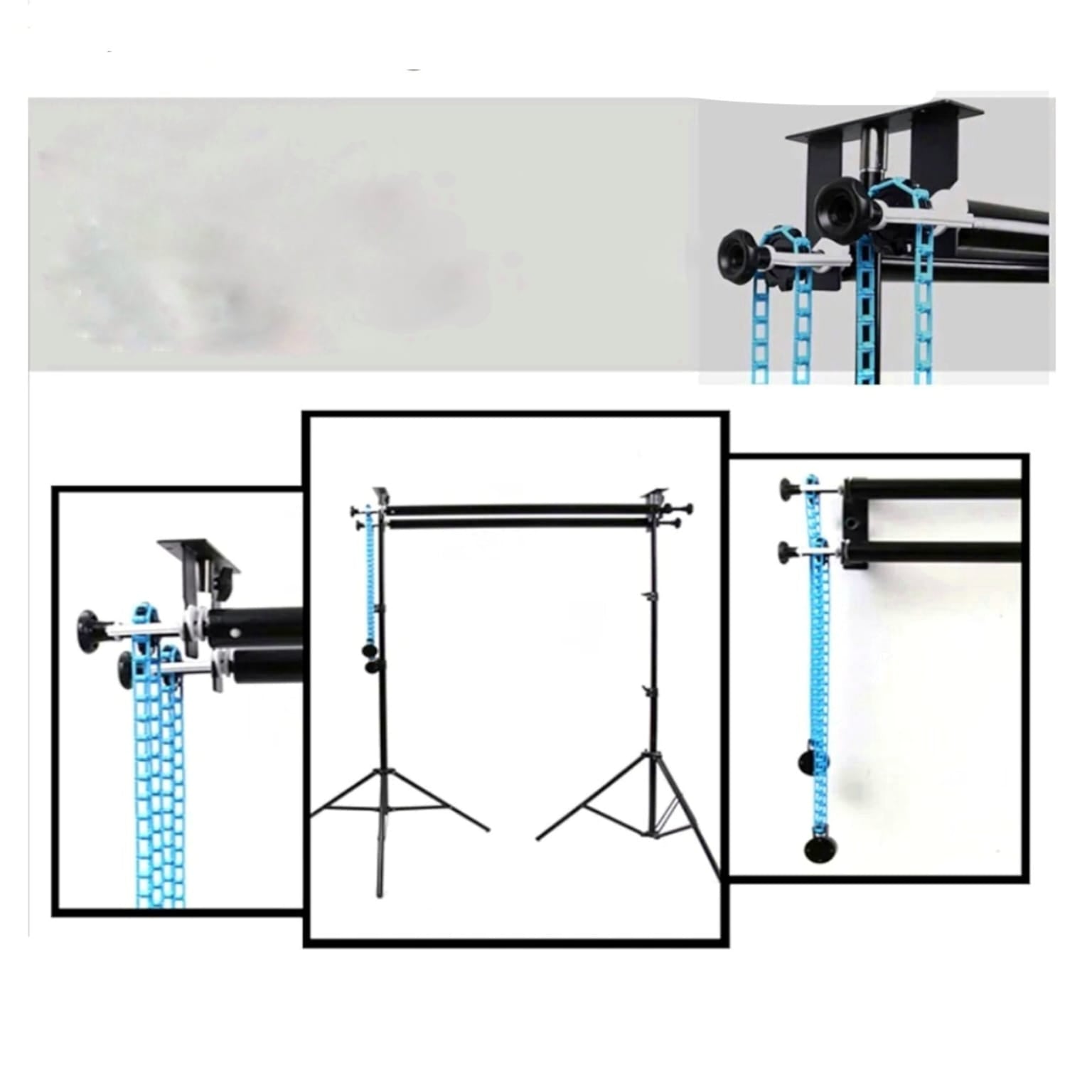 - El sistema de soporte manual de telón de fondo es perfecto para pequeños estudios o estudios en casa.