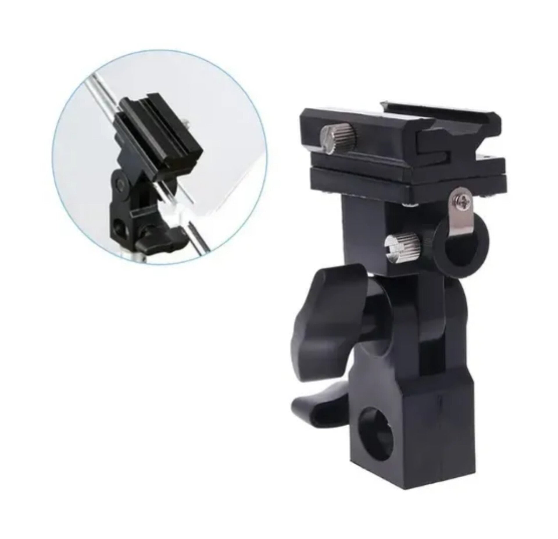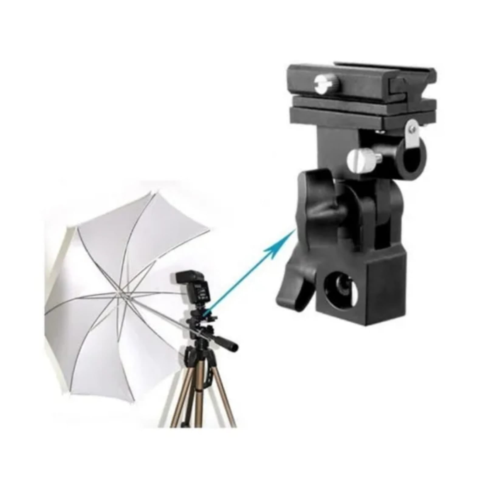 Este soporte es una forma económica de montar su flash (flash alimentados por batería) de Canon, Nikon, Pentax, Olympus, etc., para trabajar con flash y paraguas en un soporte de flash o un trípode.