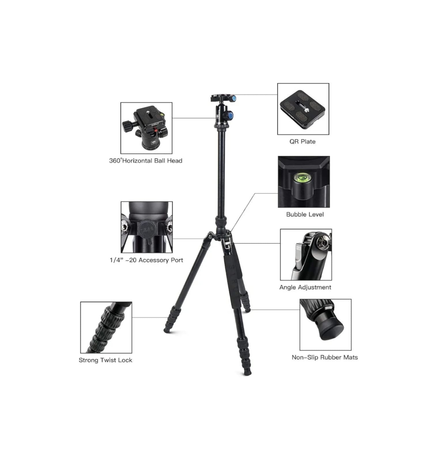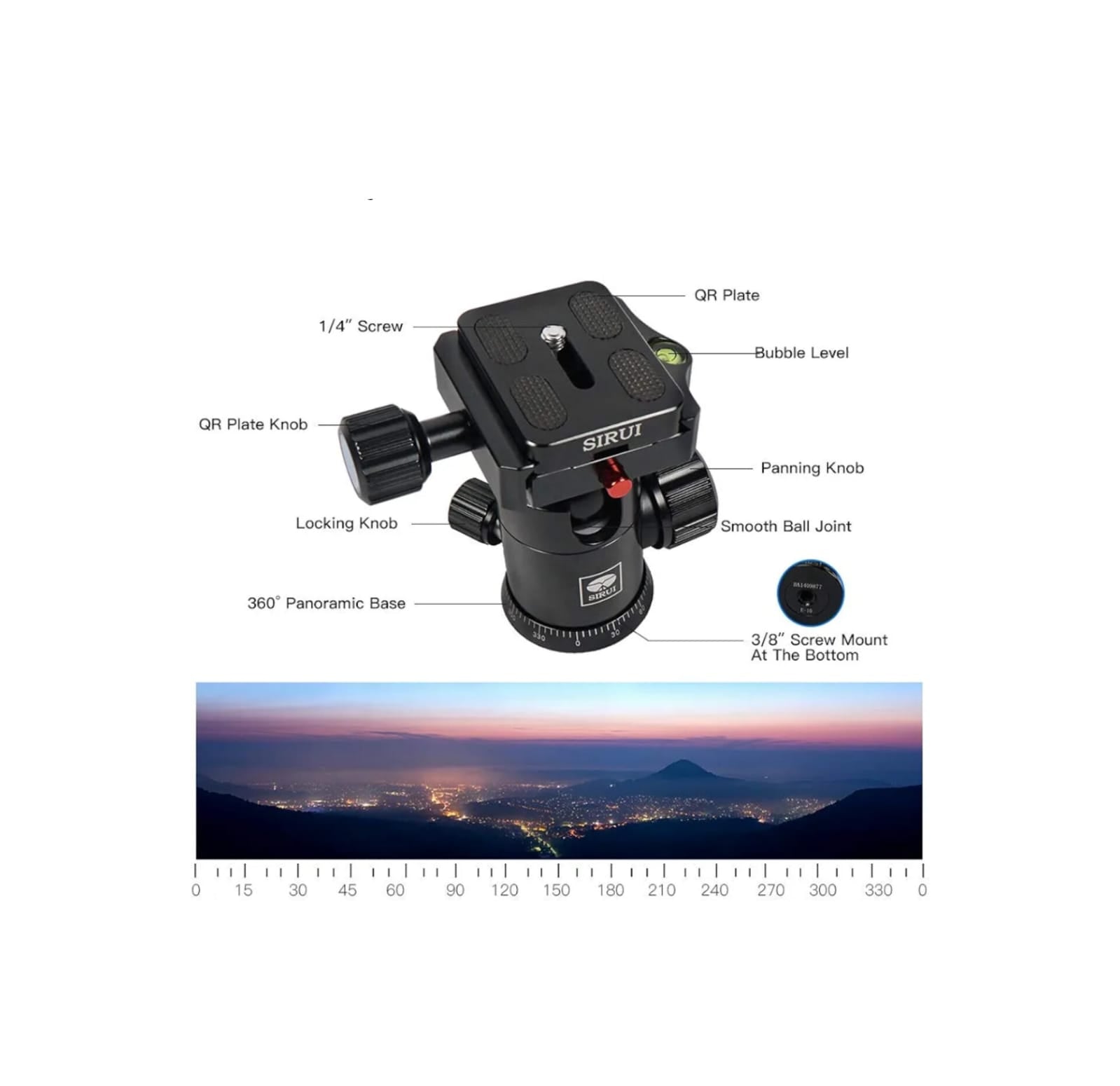 Las rótulas de bola E de SIRUI funcionan con mucha precisión, suavidad y suavidad. La base se puede girar 360, ideal para tomas panorámicas. La fricción se puede controlar mediante las perillas de ajuste. El sistema de bloqueo de seguridad evita que las placas de liberación rápida se deslicen. El mecanismo de bloqueo de la placa de liberación es compatible con los sistemas Arca Swiss y permite utilizar varias placas.